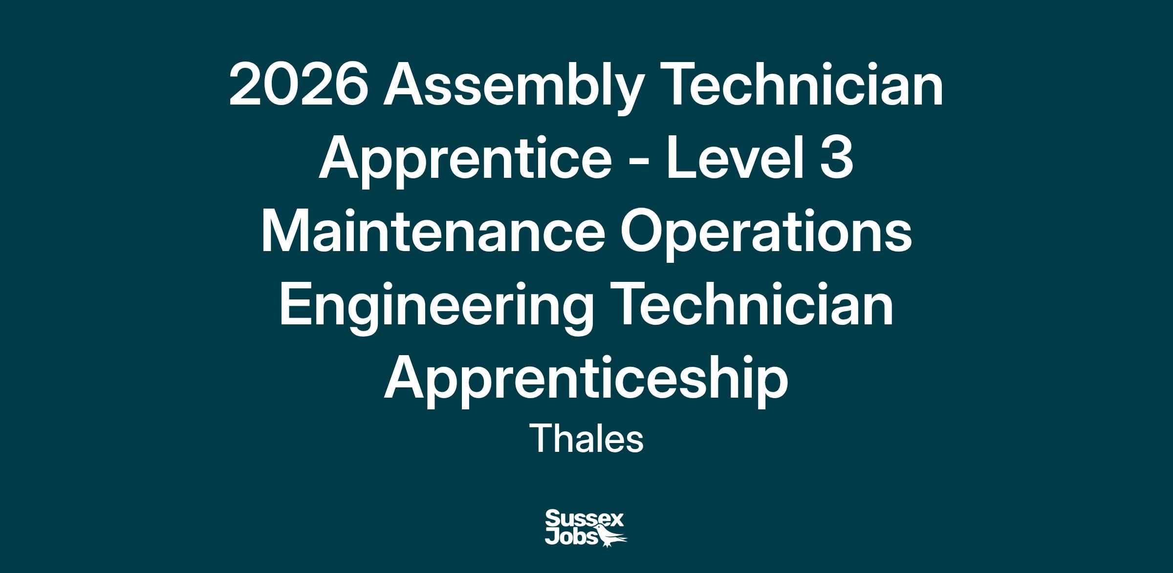 2026 Assembly Technician Apprentice - Level 3 Maintenance Operations Engineering Technician Apprenticeship