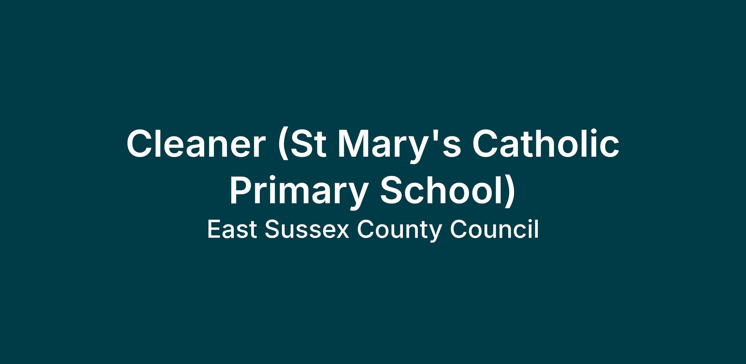 St Mary’s is a successful Catholic school where we celebrate diversity and warmly welcome families from all faiths and backgrounds. We are looking to appoint two part time cleaners to work with the school site manager at our school.