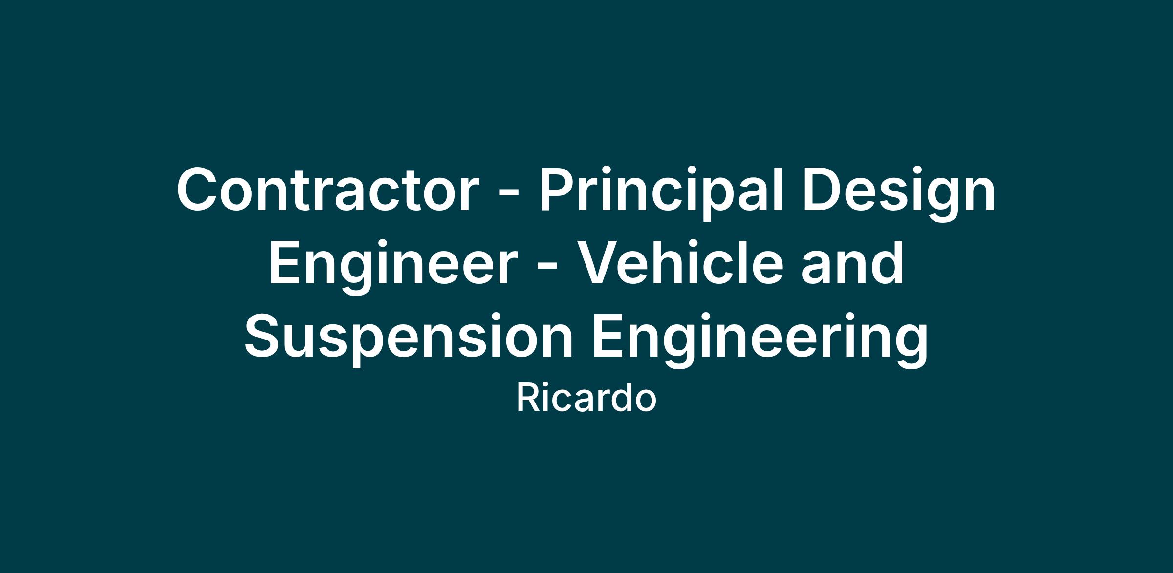 Ricardo’s A&I Division are seeking an enthusiastic and dynamic Contractor - Principal Design Engineer, you will be a part of the Global Mechanical Design team responsible for leading activities in the design of a Vehicle and Suspension Engineering, from clean sheet to production.