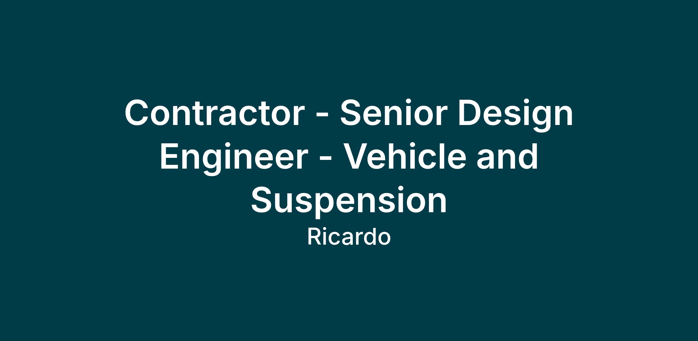 Role: Contractor - Senior Design Engineer - Vehicle and Suspension