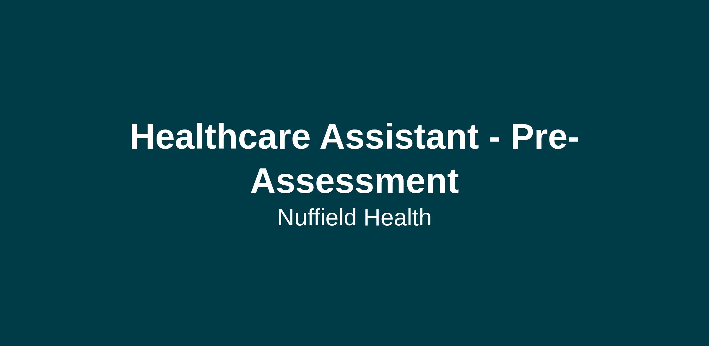Healthcare Assistant - Pre-Assessment