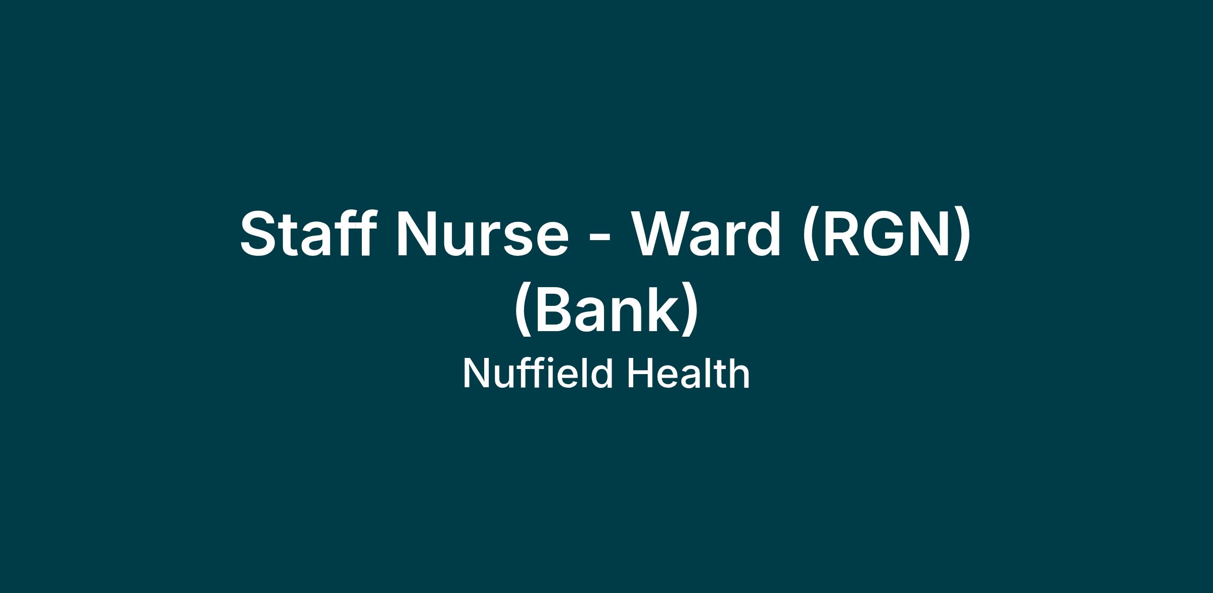 Staff Nurse – Ward (Bank)