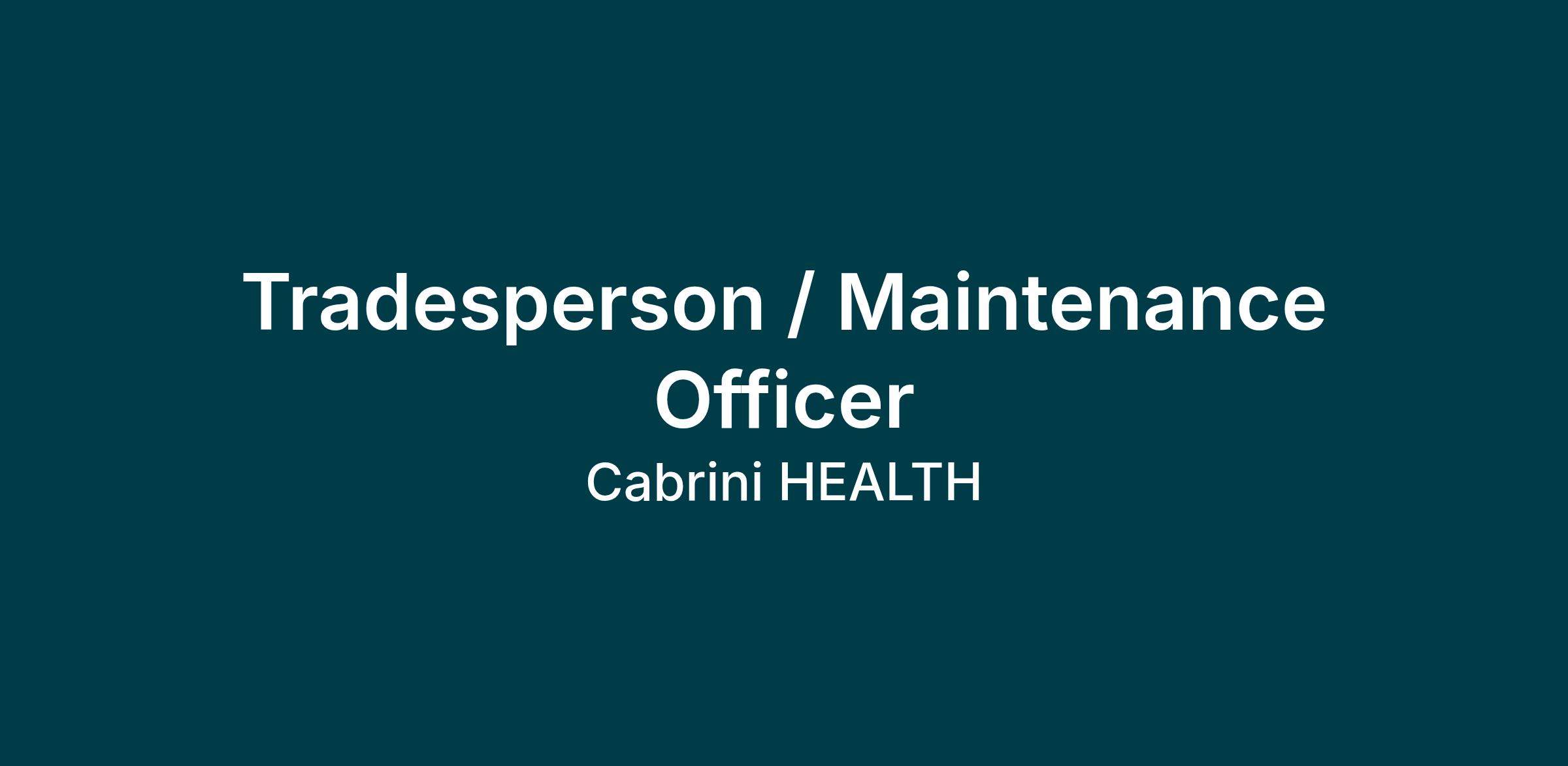 Basic troubleshooting, carry out general maintenance and repairs across Cabrini Health facilities, including carpentry and minor building works.